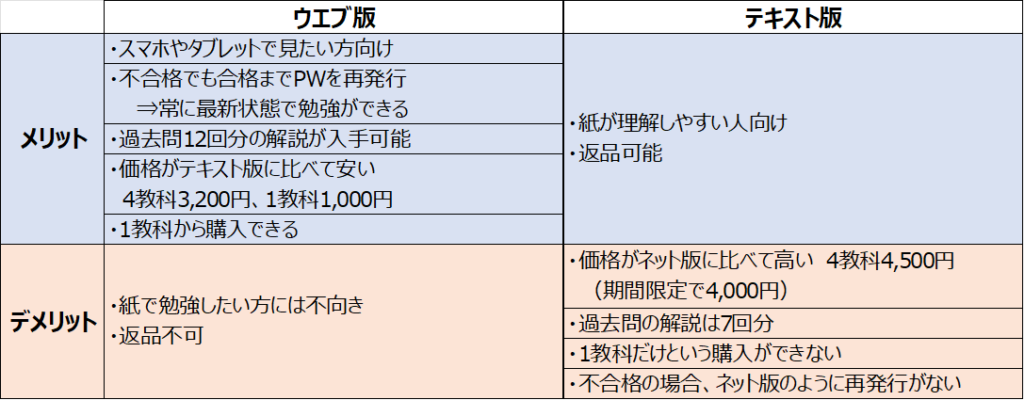 ウエブ版とテキスト版の両方を用意しています。メリットとデメリットをまとめましたので、ご検討ください。