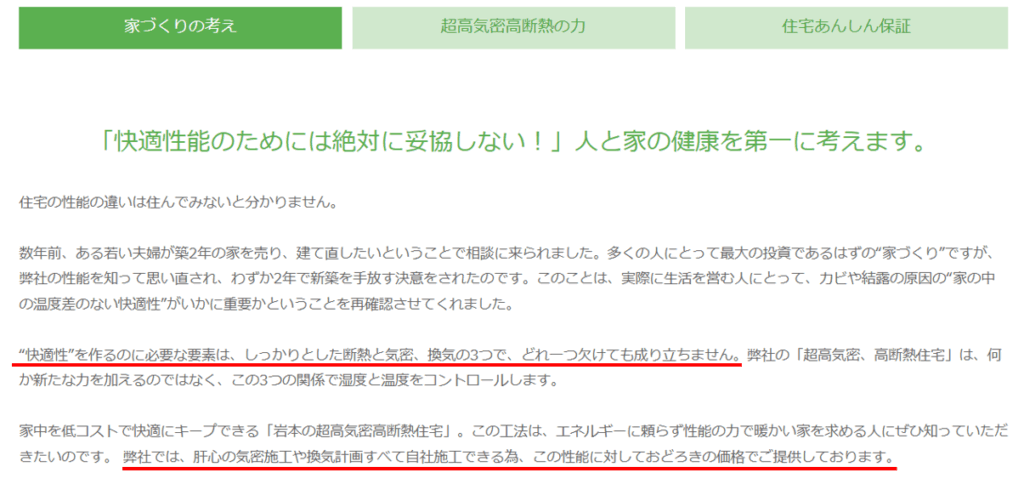 「断熱と気密、換気を重視し、且つこの性能に対しておどろきの価格でご提供しています。」と自分で宣言しています。