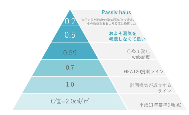 - 意味: 数値が小さいほど、気密性が高い(隙間が少ない)ことを示します